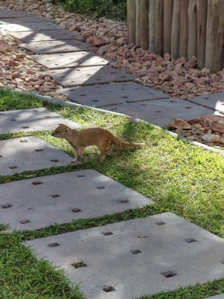 I dag har vi lavet absolut ingenting! Vi har øvet os i at ligge ved poolen (som ikke er større end et forvokset badekar) i skyggen for at afklimatisere (både til varmen og til højden) og ikke blive forbrændt. Der er ca 28C og UV på 9. Vi befinder os ca. 1700 moh. så når vi pudser næse er der blodtud. Vi lå så stille at vi så små klippe-agamer og en lille nuttet mangust.