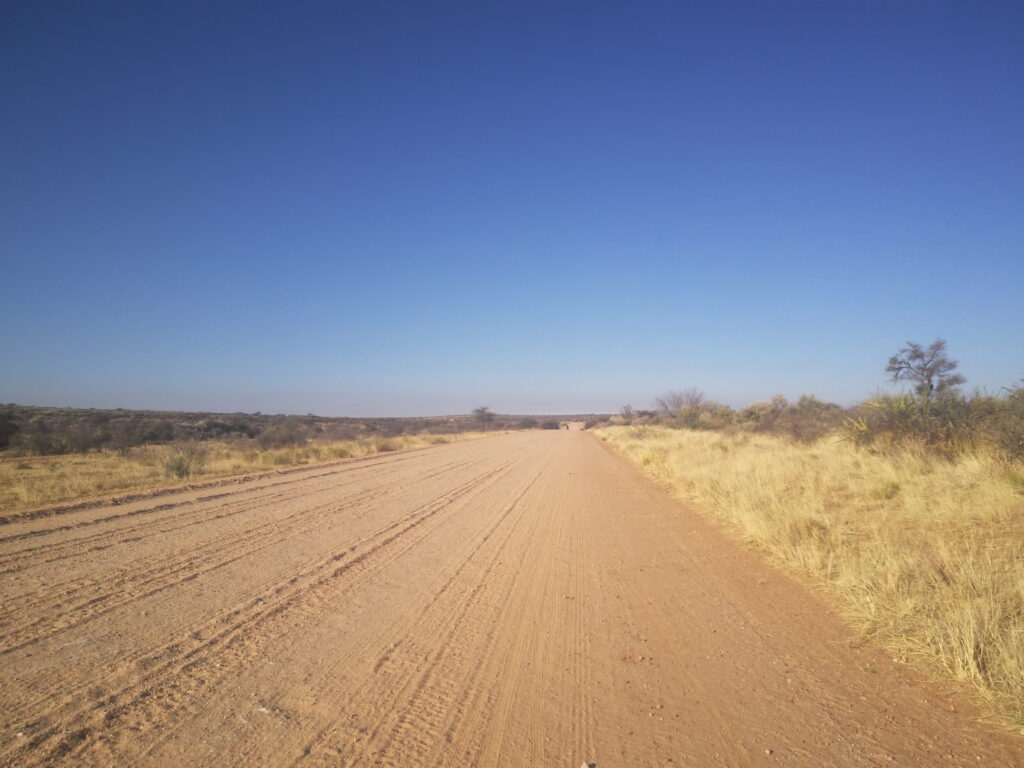 Turen startede med 10 km på “landevej” dvs grusvej med sand samt store og små sten krydret med en irriterende sidemodvind. Så drejede vi til højre og fik dejlig sidemedvind i yderligere 19 km.