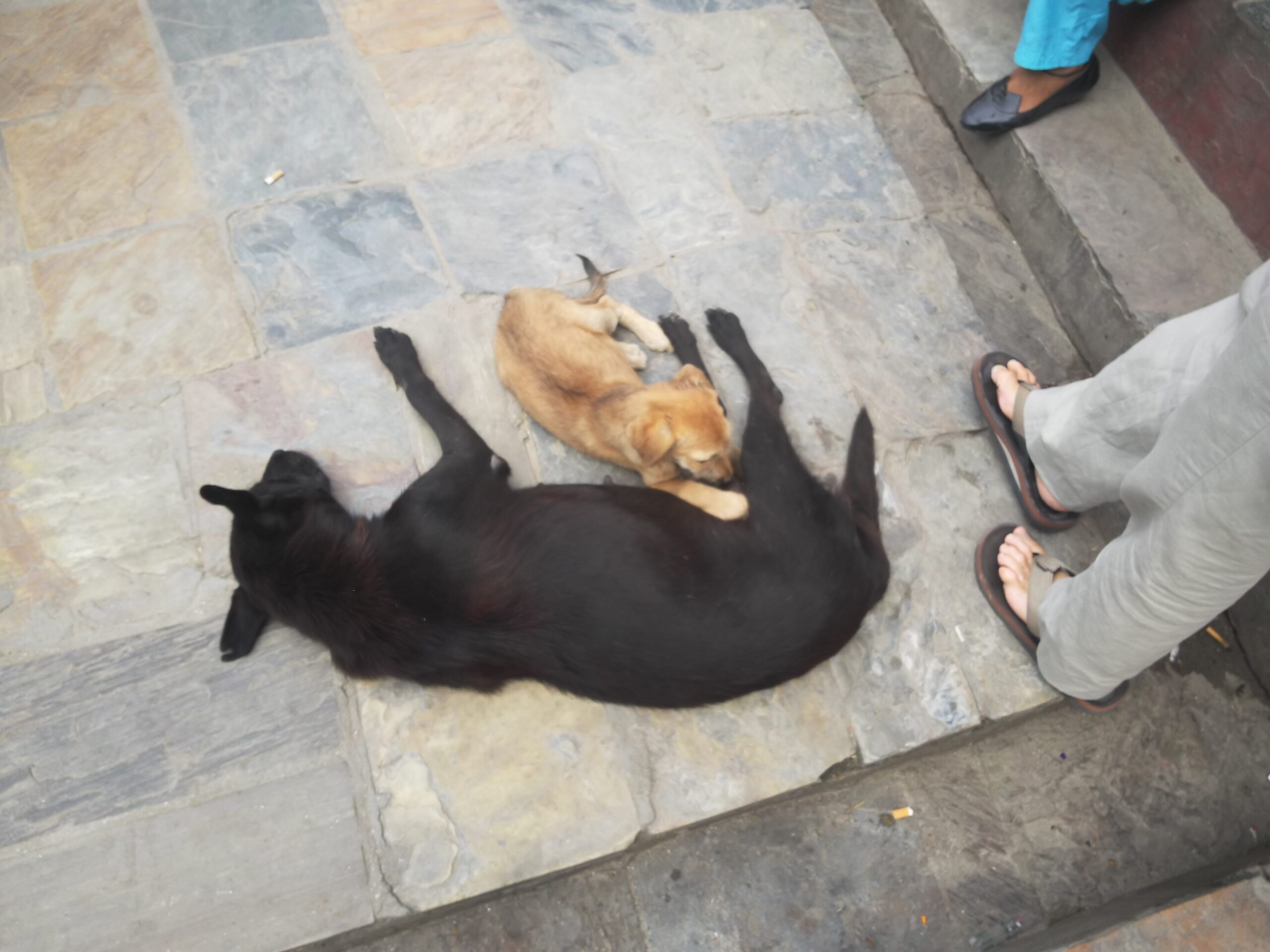 Der ligger og går mange hunde rundt omkring de ser ikke alt for forhutlede ud og ingen af dem vi har set virker aggressive. De ligger også på vejen, men alle kører udenom.